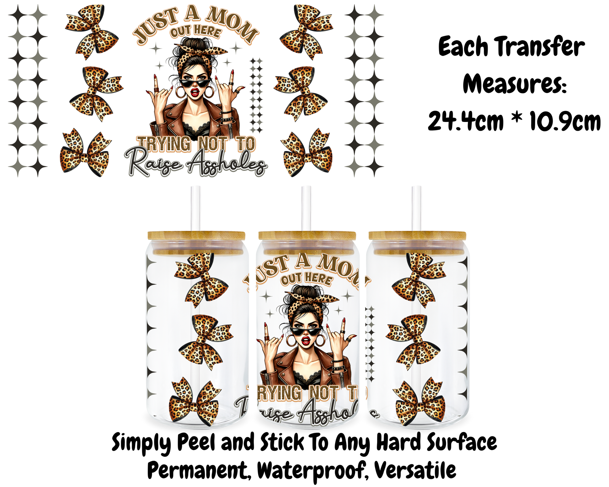 Just A Mom Trying Not To Raise Assholes - 16oz UV DTF Transfer