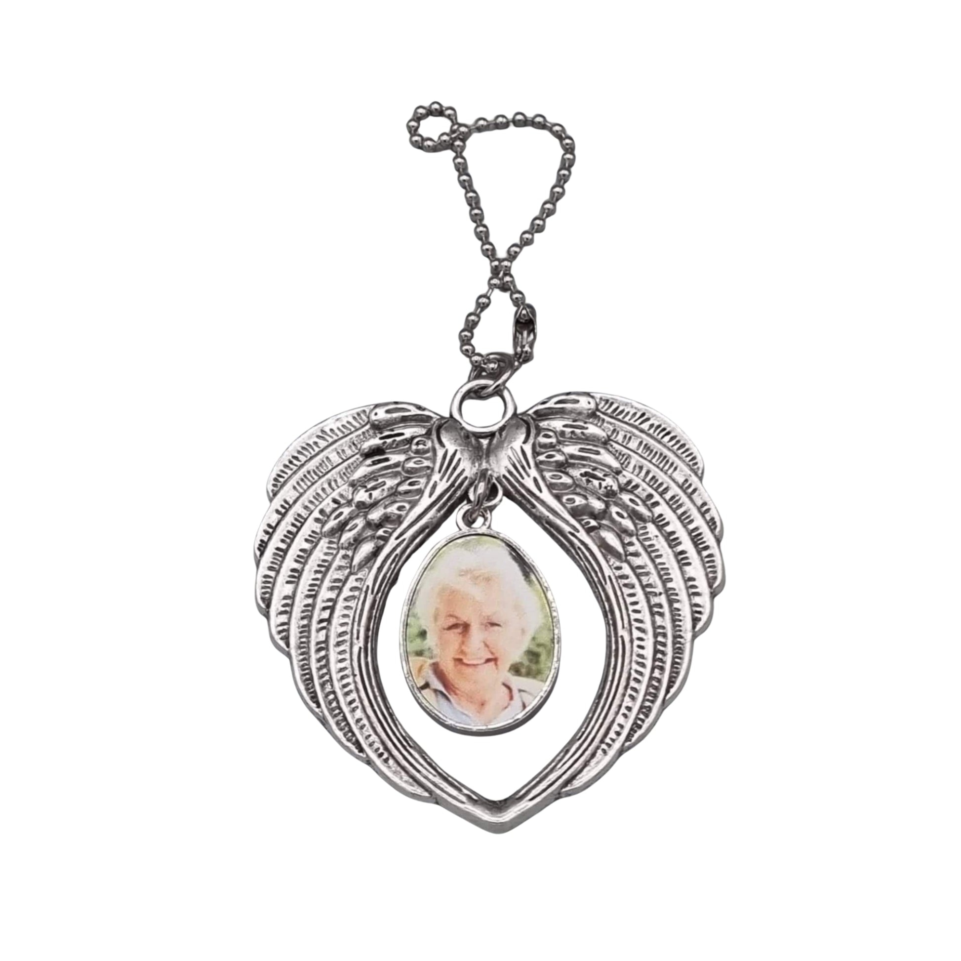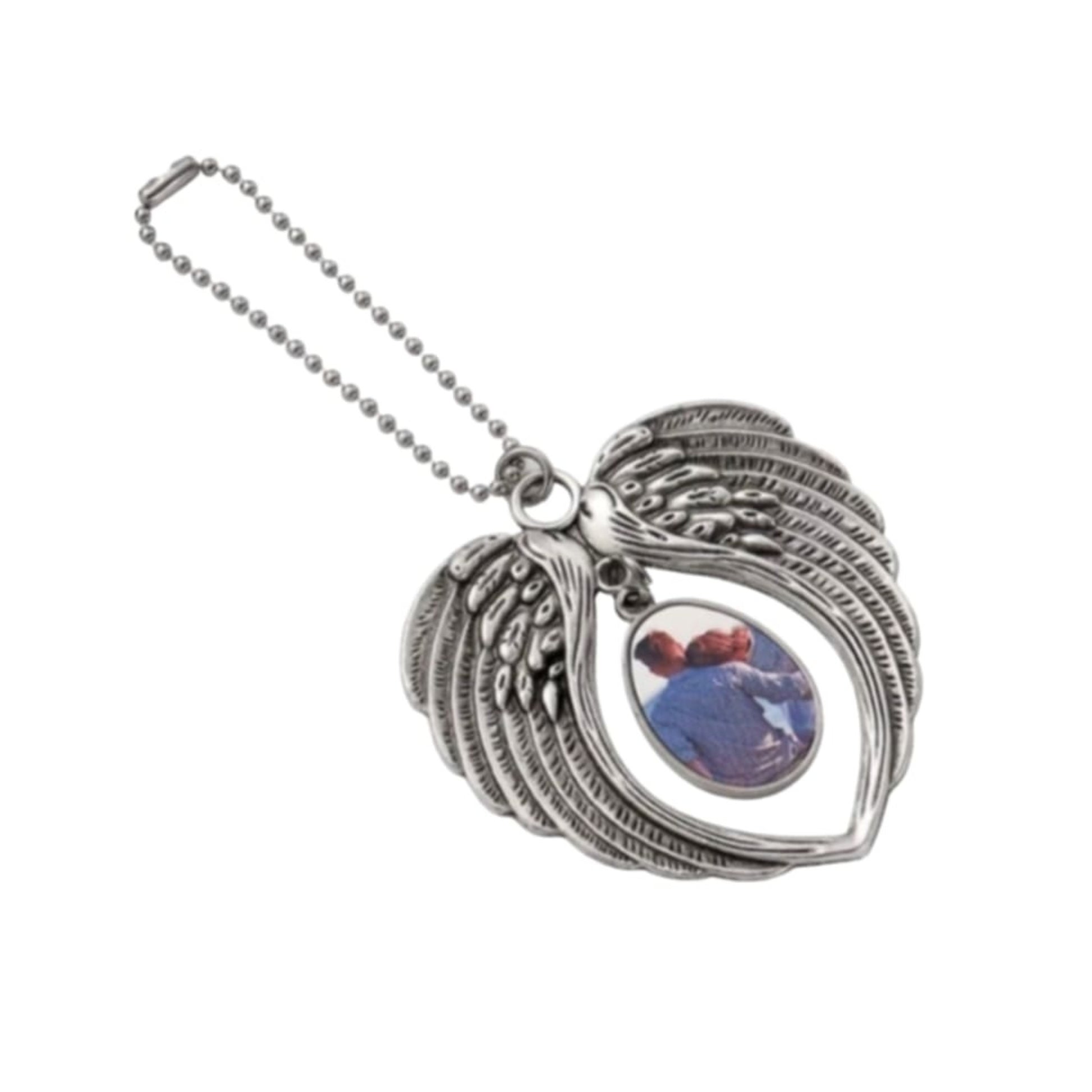 Double sided metal hanging angel wings decoration. Perfect to use in your car, home, Christmas tree etc.