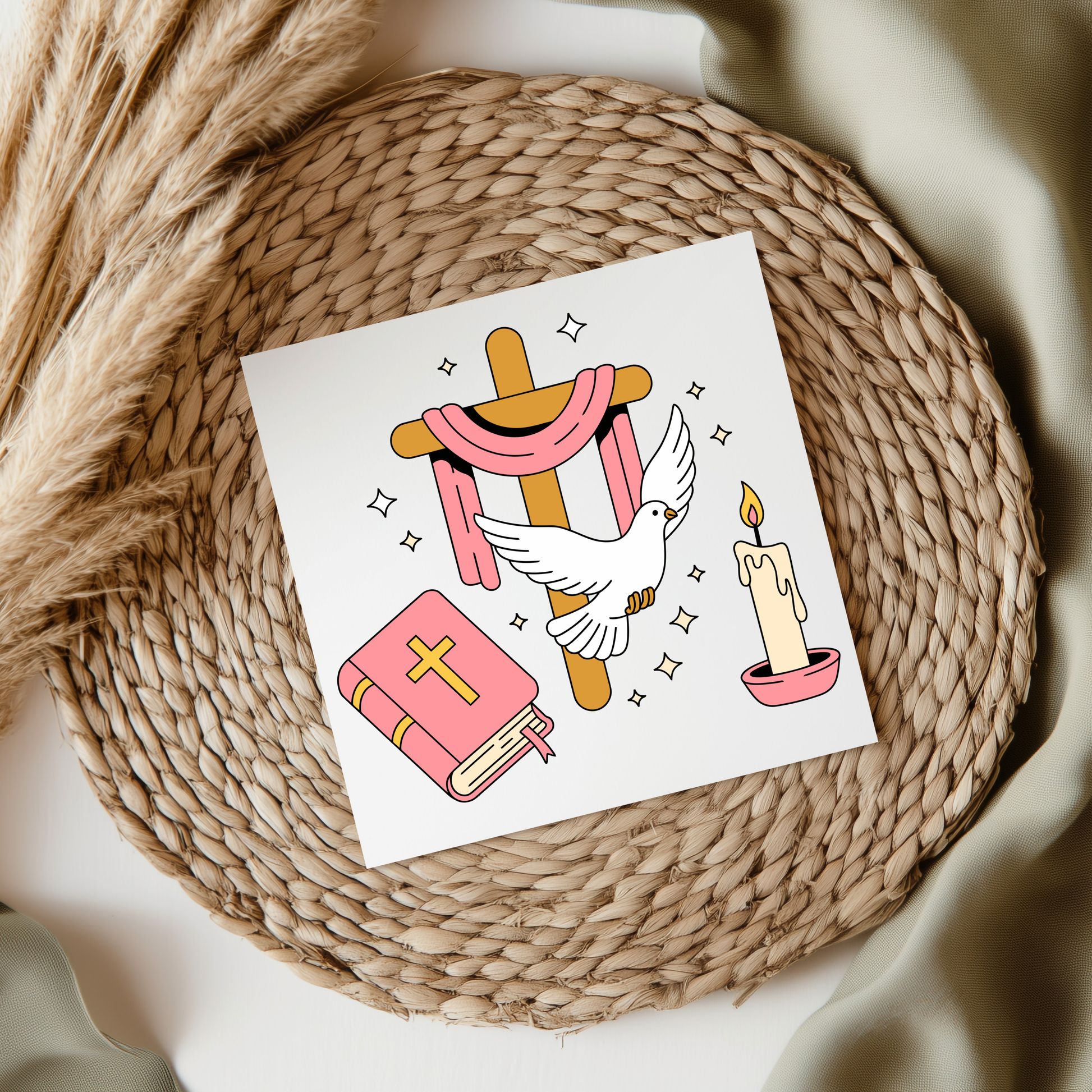 Pink Dove/Cross Set UV DTF Decal Girl