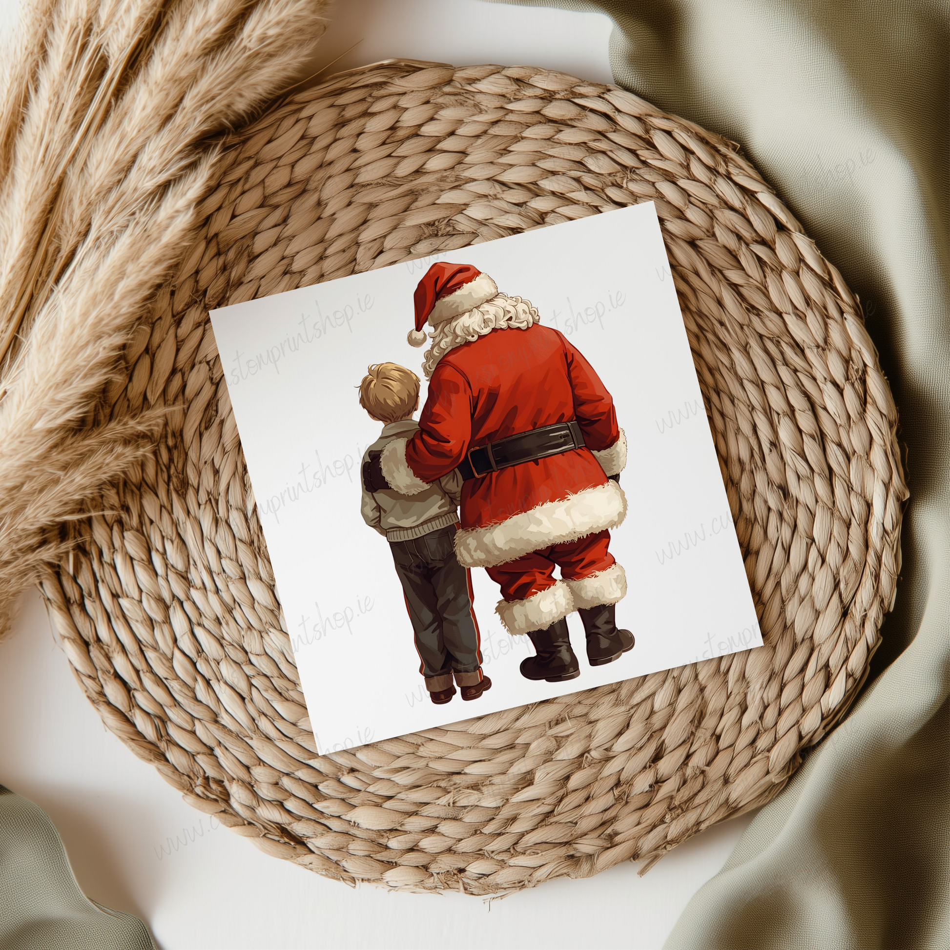 Santa Hugging Boy Blonde Hair UVDTF Transfer